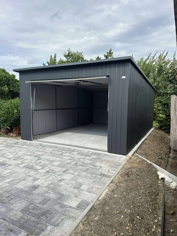 Prezentujemy garaż blaszany o wymiarach 4×5 m, stanowiący przestronne i bezpieczne miejsce dla Twojego samochodu. Konstrukcja oparta jest na wzmocnionych profilach zamkniętych ocynkowanych, co zapewnia wysoką sztywność i odporność na korozję. W standardzie garaż posiada pełne wykończenie blacharskie (narożniki, dach), estetyczne pionowe ułożenie blachy.