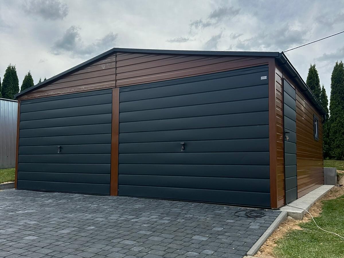 Prezentujemy garaż blaszany z linii PREMIUM o wymiarach 6×6 m, stanowiący przestronne i bezpieczne miejsce dla Twoich samochodów. Konstrukcja oparta jest na wzmocnionych profilach zamkniętych ocynkowanych, co zapewnia wysoką sztywność i odporność na korozję. W standardzie garaż posiada pełne wykończenie blacharskie (narożniki, dach), estetyczne poziome ułożenie blachy oraz dodatkowe doświetlenie wnętrza dzięki oknu.